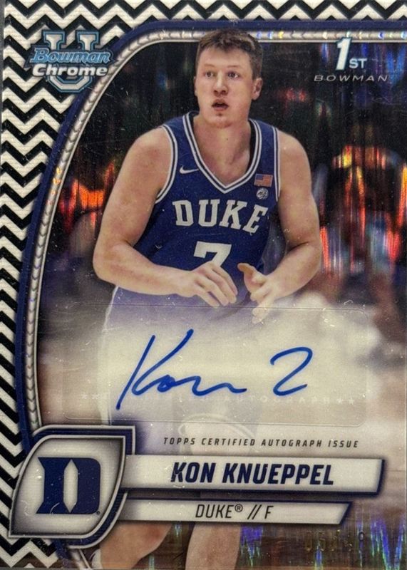 Kon Knueppel 2024 Bowman Chrome University #48 Prospect Auto - Black & White Stealth Refractor /48 (1st) RAW Price Guide