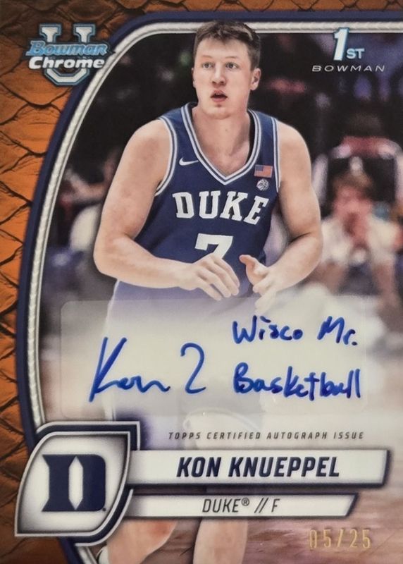 Kon Knueppel 2024 Bowman Chrome University #48 Prospect Auto - Reptilian Orange Refractor /25 (1st) RAW Price Guide