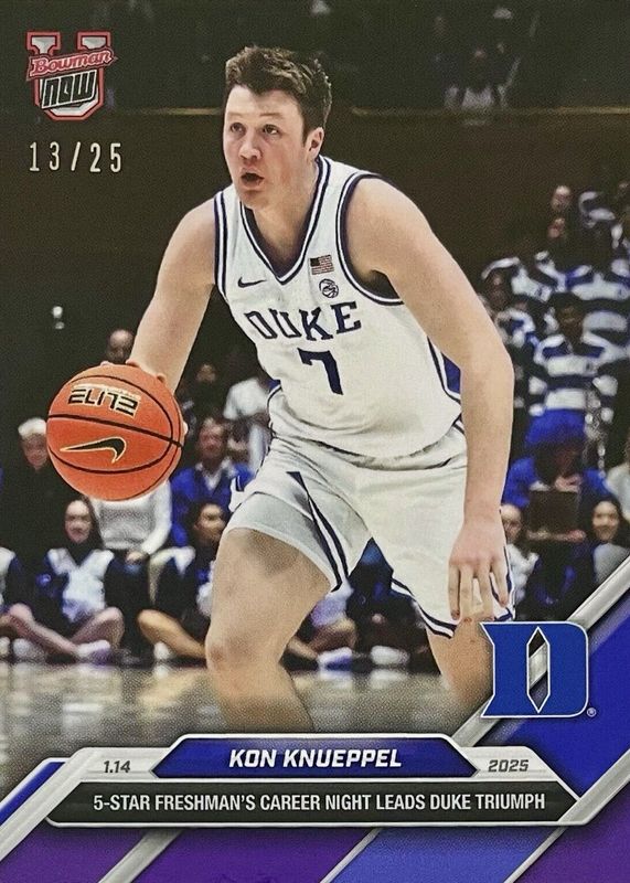 2024-25 Bowman U Now Kon Knueppel #48 Freshman Career Night Duke Purple /25