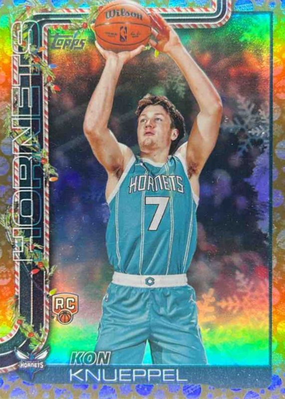 This card is 1 of 43 Kon Knueppel's card variations in the 2025 Topps Holiday set being tracked by Sports Card Investor, including Base, Blue Metallic Glitter, Glitter, Light Blue & White Glitter, and Plaid.