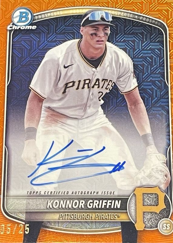 KONNOR GRIFFIN 2025 BOWMAN CHROME ORANGE MOJO REFRACTOR AUTO /25 PIRATES 🔥🔥