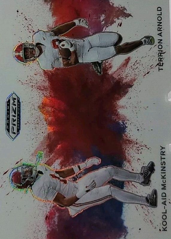 This card is 1 of 4 Kool-Aid McKinstry / Terrion Arnold's card variations in the 2024 Prizm Draft Picks set being tracked by Sports Card Investor, including #CBD-ALA Black Color Blast Duals /(SSP), #CBD-BAMA Black Color Blast Duals /(SSP), and #CBD-BAMA Color Blast Duals /(SSP).