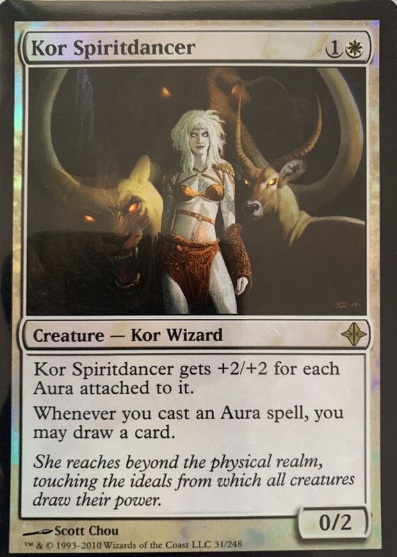 The Kor Spiritdancer 2010 Rise of the Eldrazi #31 Foil card in Raw TCG (Near Mint) condition has not changed in price in the last 30 days and was last sold for $15.00 .