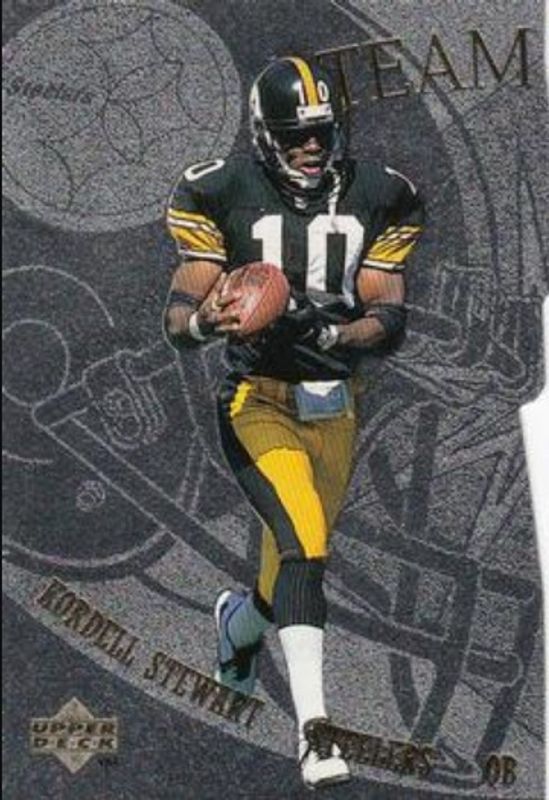 The Kordell Stewart 1997 Upper Deck #TM47 Team Mates card is 1 of 6 Kordell Stewart's card variations in the 1997 Upper Deck set being tracked by Sports Card Investor, including Base, Game Dated Moment Foils, Star Attractions, Star Attractions Gold, and Star Crossed.