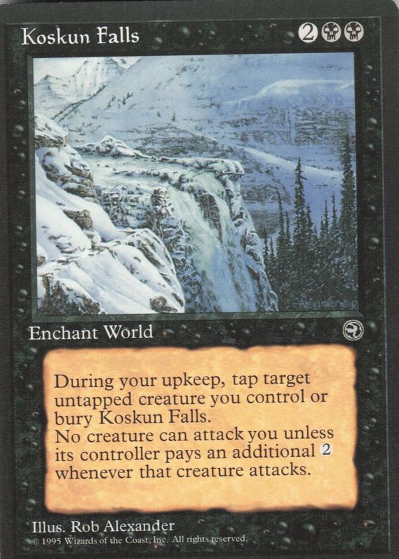 The Koskun Falls 1995 Homelands Base card in Raw condition has moved down -$2.97 (-24.7%) in the last 30 days and was last sold for $9.03 .