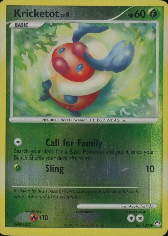 Kricketot 2007 Diamond & Pearl: Mysterious Treasures #086/123 Reverse Holo RAW TCG (LIGHTLY PLAYED) Price Guide
