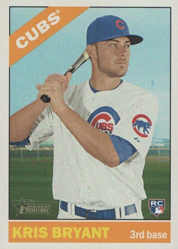 The Kris Bryant 2015 Topps Heritage High Number #725 Base SP Rookie card in Raw condition has moved up $4.51 (+455%) in the last 30 days and was last sold for $5.50 .