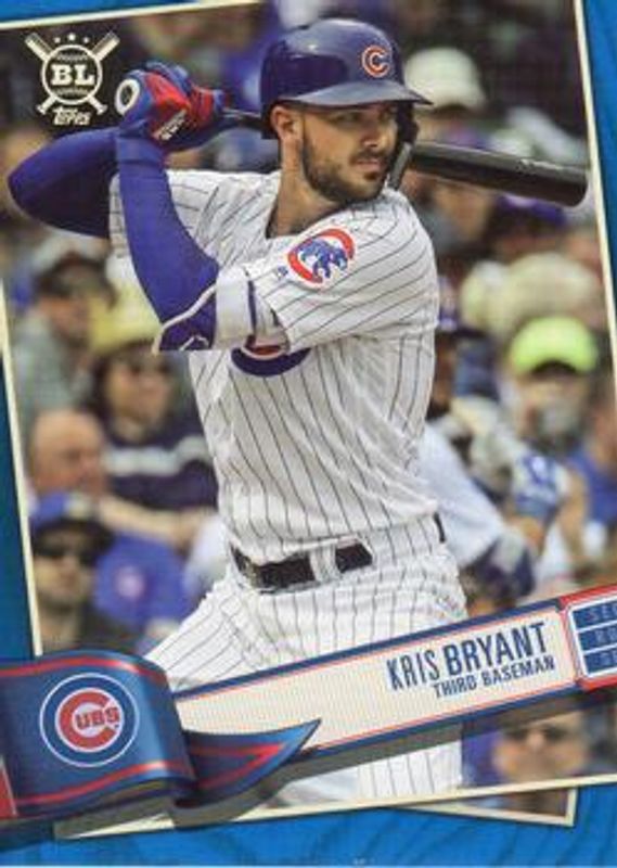 The Kris Bryant 2019 Topps Big League #160 Blue card is 1 of 11 Kris Bryant's card variations in the 2019 Topps Big League set being tracked by Sports Card Investor, including Base, Gold, Rainbow Foil /100, Artist Rendition /50, and Red Foil /1.