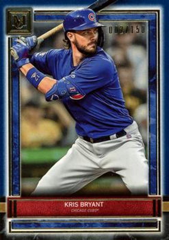 The Kris Bryant 2020 Topps Museum Collection #21 Sapphire /150 card is 1 of 24 Kris Bryant's card variations in the 2020 Topps Museum Collection set being tracked by Sports Card Investor, including Base, Copper, Amethyst /99, Ruby /50, and Emerald /1.