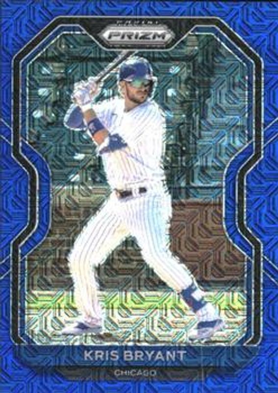 The Kris Bryant 2021 Prizm #3 Blue Mojo /199 card is 1 of 83 Kris Bryant's card variations in the 2021 Prizm set being tracked by Sports Card Investor, including Blue, Blue Velocity, Carolina Blue, Cosmic Haze, and Giraffe.