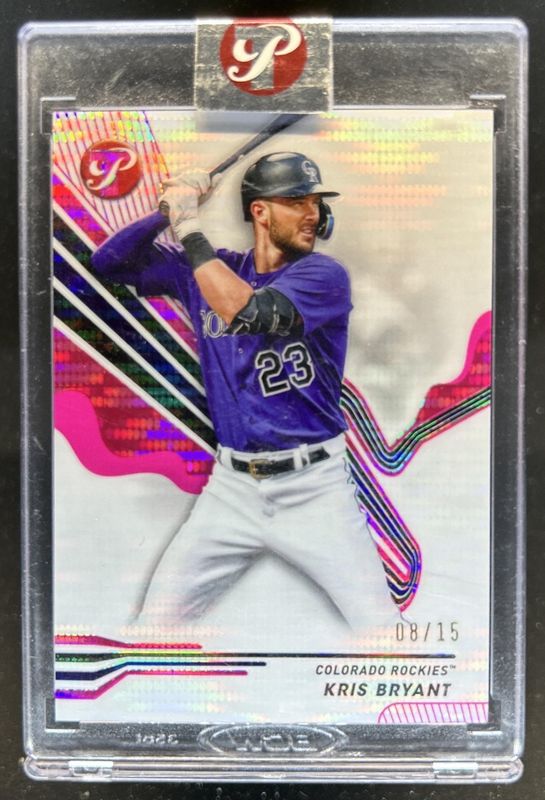 The Kris Bryant 2024 Topps Pristine #51 Pristine Pink Refractor /15 card is 1 of 24 Kris Bryant's card variations in the 2024 Topps Pristine set being tracked by Sports Card Investor, including Base, Pristine Refractor, Refractor, Green Refractor /150, and Pristine Purple Refractor /99.