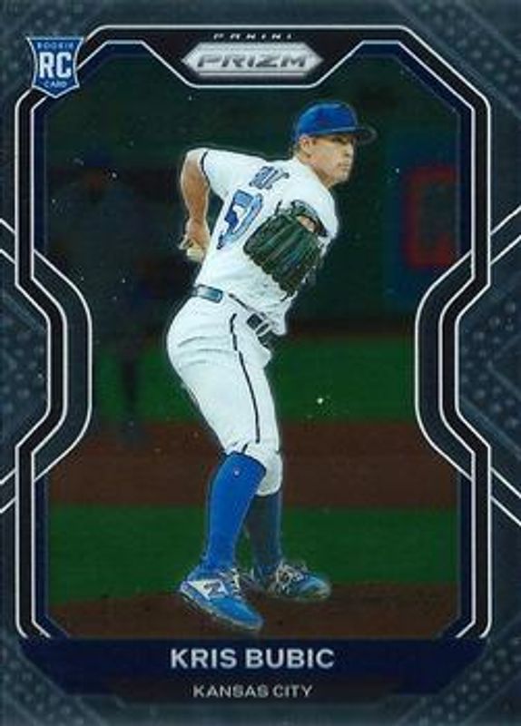 The Kris Bubic 2021 Prizm #198 Base Rookie card is 1 of 70 Kris Bubic's card variations in the 2021 Prizm set being tracked by Sports Card Investor, including Blue, Blue Velocity, Carolina Blue, Cosmic Haze, and Giraffe.