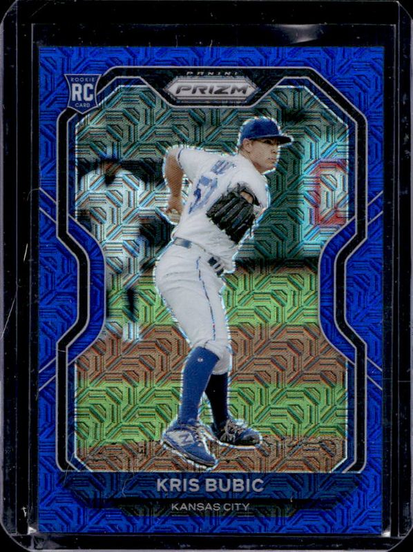 The Kris Bubic 2021 Prizm #198 Blue Mojo /199 Rookie card is 1 of 70 Kris Bubic's card variations in the 2021 Prizm set being tracked by Sports Card Investor, including Base, Blue, Blue Velocity, Carolina Blue, and Cosmic Haze.