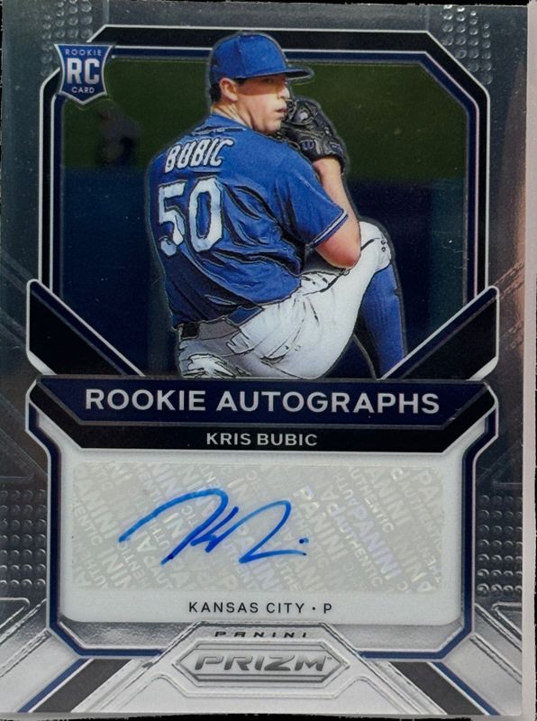 The Kris Bubic 2021 Prizm #RA-KB Rookie Autographs card is 1 of 70 Kris Bubic's card variations in the 2021 Prizm set being tracked by Sports Card Investor, including Base, Blue, Blue Velocity, Carolina Blue, and Cosmic Haze.