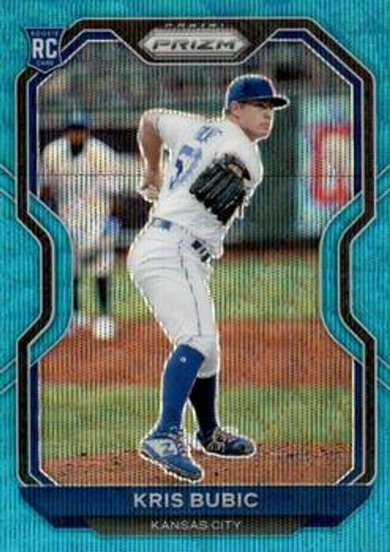The Kris Bubic 2021 Prizm #198 Teal Wave Rookie card is 1 of 70 Kris Bubic's card variations in the 2021 Prizm set being tracked by Sports Card Investor, including Base, Blue, Blue Velocity, Carolina Blue, and Cosmic Haze.