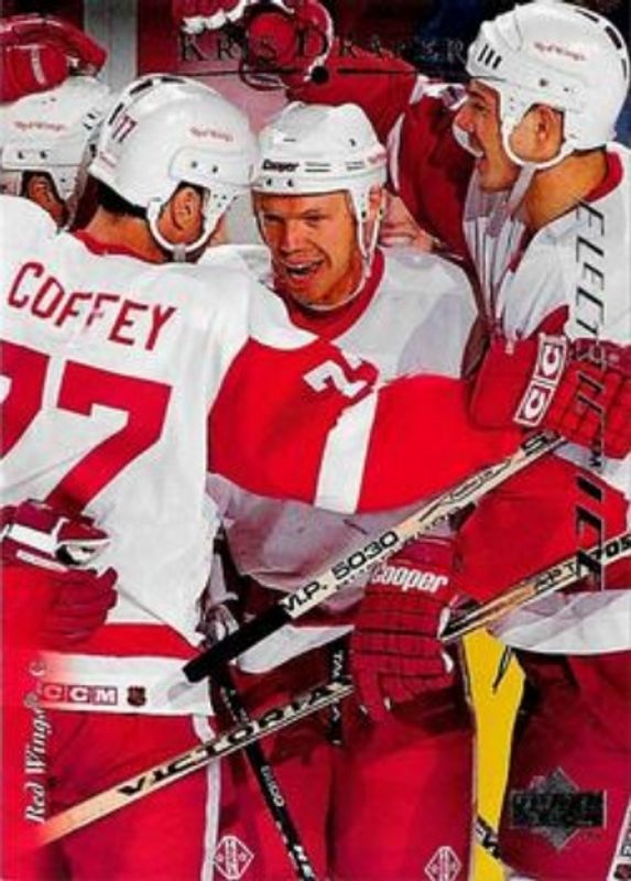 The Kris Draper 1995 Upper Deck #459 Electric Ice card is 1 of 3 Kris Draper's card variations in the 1995 Upper Deck set being tracked by Sports Card Investor, including Base, and Electric Ice Gold.