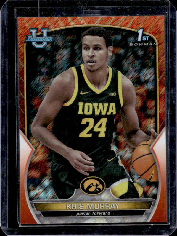 The Kris Murray 2022 Bowman Chrome University #71 Orange Shimmer Refractor /25 card is 1 of 38 Kris Murray's card variations in the 2022 Bowman Chrome University set being tracked by Sports Card Investor, including Base, Pink Refractor, Purple Shimmer Refractor, Refractor, and Shimmer Refractor.
