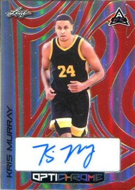 The Kris Murray 2022 Leaf Optichrome #BA-KM2 Prismatic Red card is 1 of 105 Kris Murray's card variations in the 2022 Leaf Optichrome set being tracked by Sports Card Investor, including Base, Crystal Black, Crystal Blue, Crystal Green, and Crystal Orange.