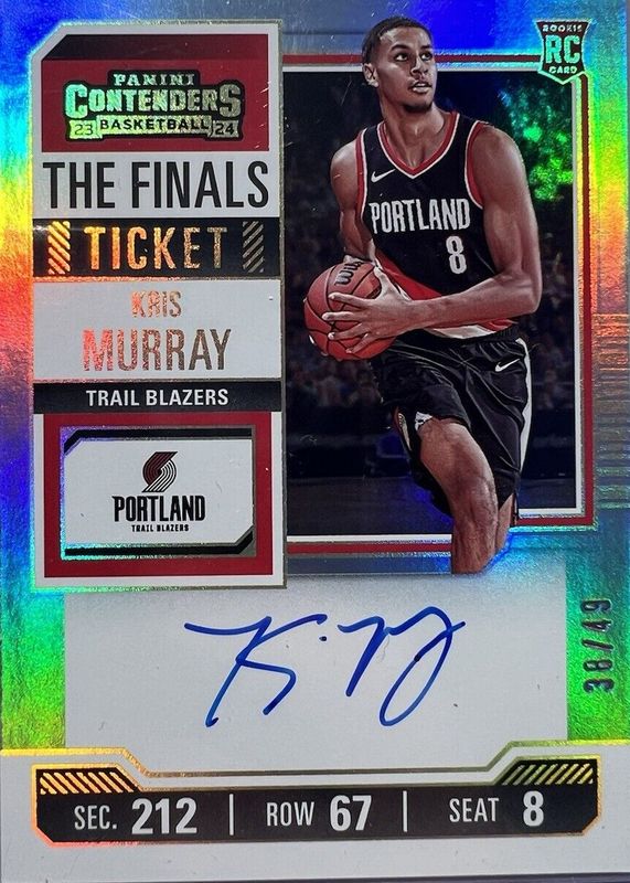 2023-24 Contenders Kris Murray RC The Finals Ticket Auto #31/49 Trail Blazers