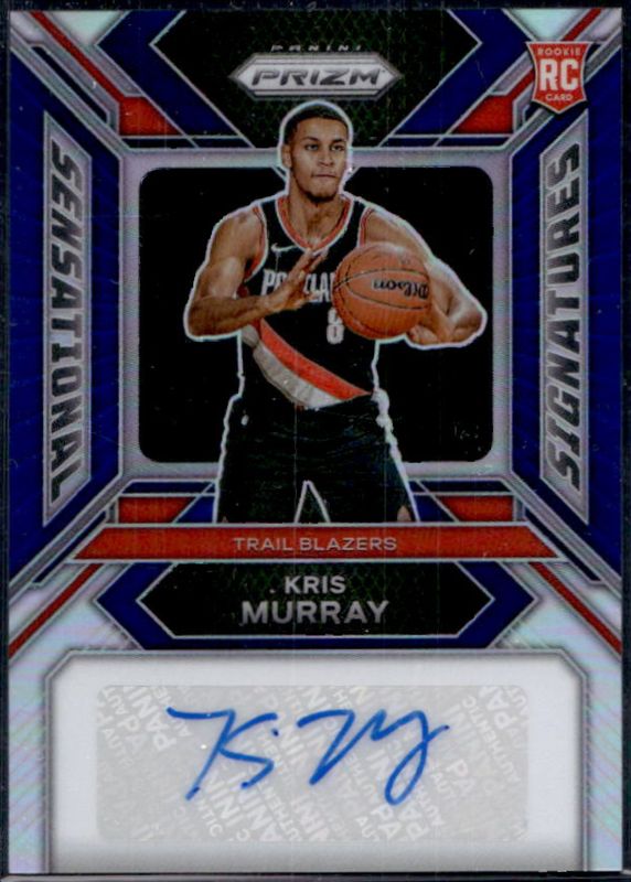 The Kris Murray 2023 Prizm #SS-MU Sensational Signatures - Blue /49 Rookie card is 1 of 101 Kris Murray's card variations in the 2023 Prizm set being tracked by Sports Card Investor, including Base, Blue Wave, Choice Blue Yellow Green, Fast Break, and Green.