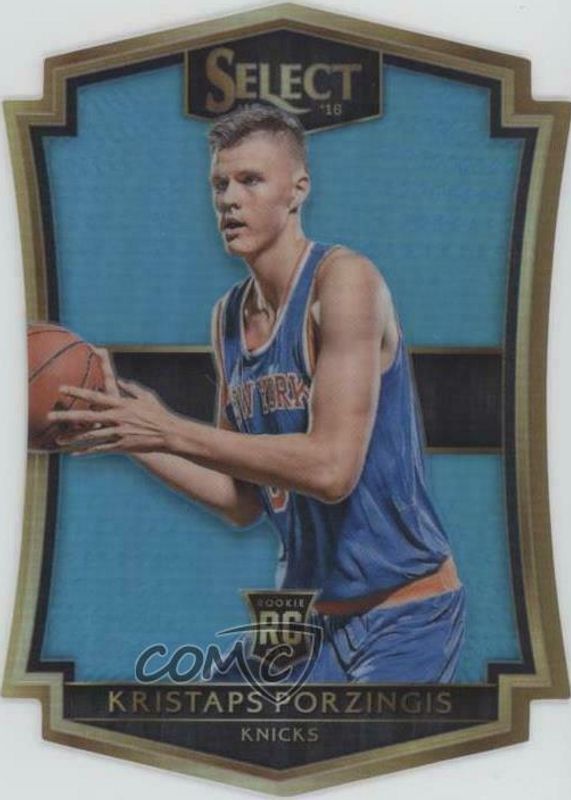 Kristaps Porzingis 2015-16 Select Premier Level Light Blue Prizm Die-Cut RC /199