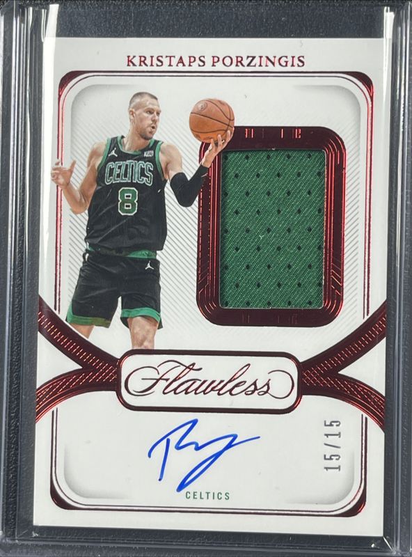 Kristaps Porzingis 2023 Flawless #SPA-KPB Signatures Prime Materials - Ruby /15 RAW Price Guide