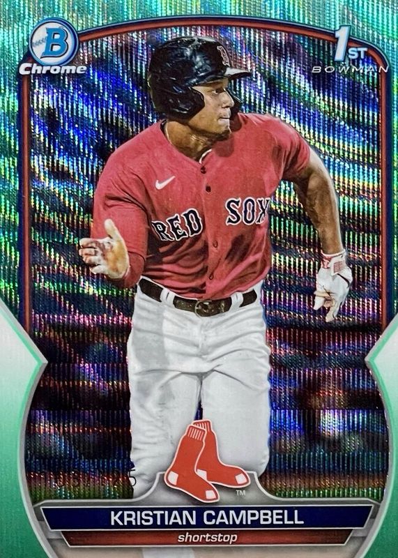 The Kristian Campbell 2023 Bowman Draft #BDC-125 Chrome - Aqua Wave Refractor /125 (1st) card in Raw condition has not changed in price in the last 30 days and was last sold for $22.50 .