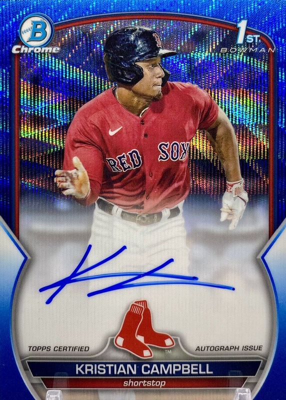 KRISTIAN CAMPBELL 2023 BOWMAN DRAFT CHROME 1ST AUTO BLUE WAVE REFRACTOR 90/150