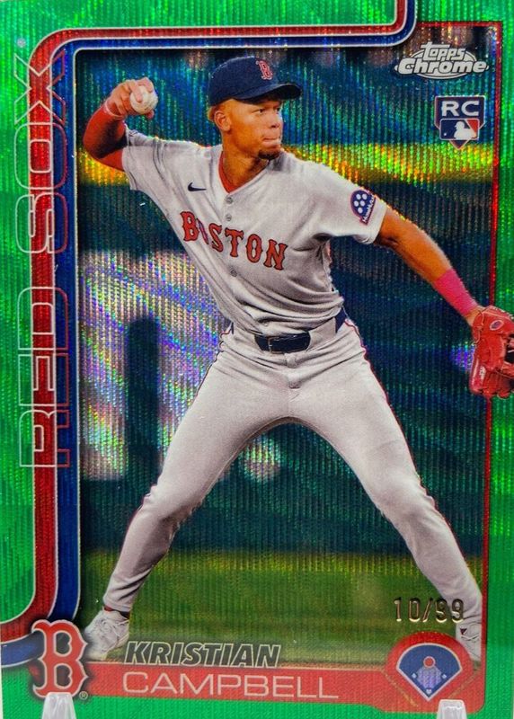 Best Prices Available For Sale of Kristian Campbell 2025 Topps Chrome #171 Green Wave Refractor /99