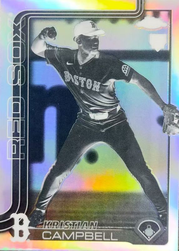 This card is 1 of 73 Kristian Campbell's card variations in the 2025 Topps Chrome set being tracked by Sports Card Investor, including Base, Geometric Refractor, Lightboard Logo Variation, Prism Refractor, and RayWave Refractor.