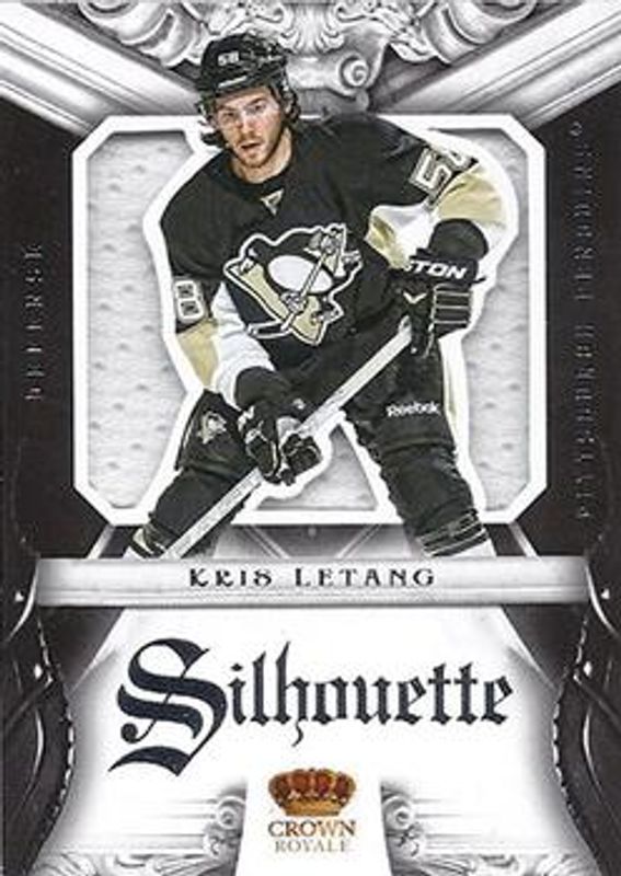 The Kristopher Letang 2012 Panini Rookie Anthology #13 Crown Royale Silhouette card is 1 of 5 Kristopher Letang's card variations in the 2012 Panini Rookie Anthology set being tracked by Sports Card Investor, including Titanium Metallic Marks - Silver, Elite The Great Outdoors /500, Crown Royale Silhouette Prime /25, and Crown Royale Silhouette Patch /10.