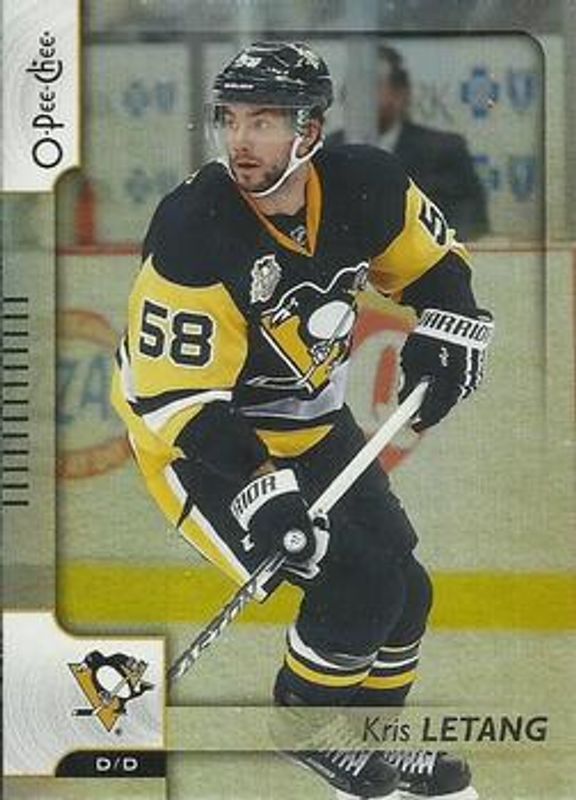 The Kristopher Letang 2017 O-Pee-Chee #197 Rainbow Foil card is 1 of 6 Kristopher Letang's card variations in the 2017 O-Pee-Chee set being tracked by Sports Card Investor, including Base, Red, Retro, Retro Blank Back, and Black Rainbow Foil /100.