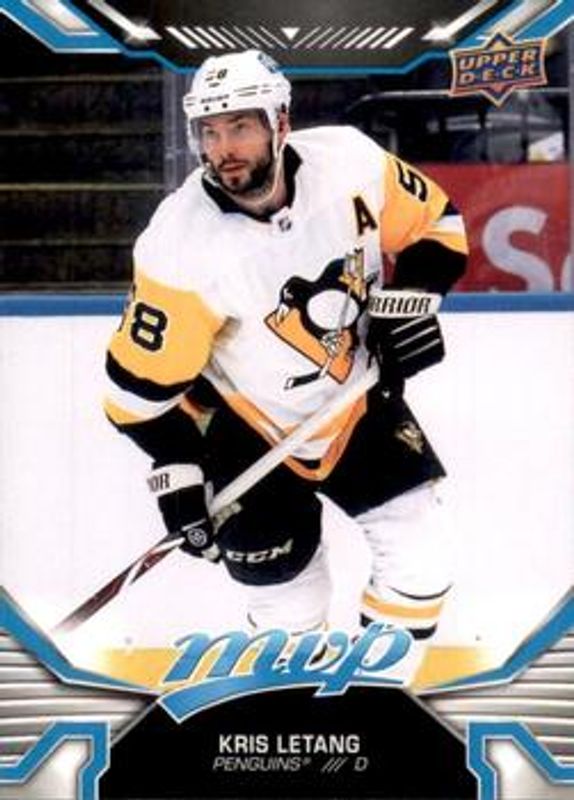 The Kristopher Letang 2022 Upper Deck MVP #207 Base card is 1 of 27 Kristopher Letang's card variations in the 2022 Upper Deck MVP set being tracked by Sports Card Investor, including Blue Script, Gold Script, Ice Battles, Silver Script, and Super Script /25.