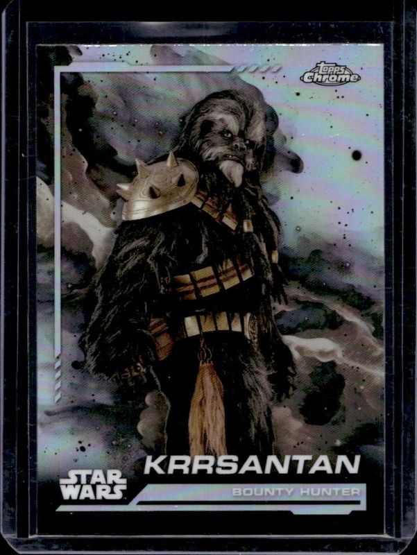 The Krrsantan 2024 Topps Chrome Star Wars #26 Rainbow Refractor card is 1 of 24 Krrsantan's card variations in the 2024 Topps Chrome Star Wars set being tracked by Sports Card Investor, including Base, Blue Blaster Pulsar Refractor, Costco Super Box, Costco Super Box Refractor, and Red Blaster RayWave Refractor.