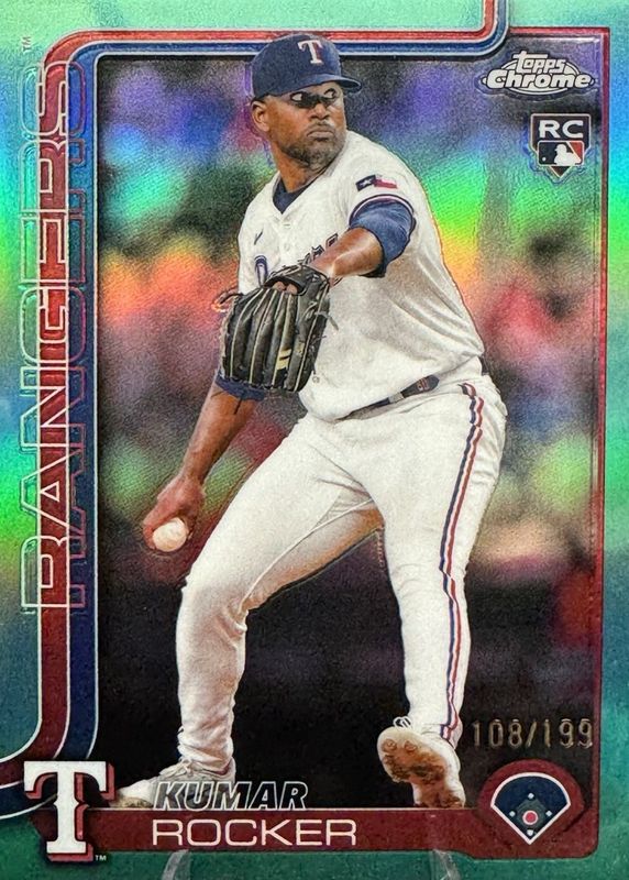 The Kumar Rocker 2025 Topps Chrome #73 Aqua Refractor /199 Rookie card in Raw condition has moved up $0.60 (+60.6%) in the last 30 days and was last sold for $1.59 .