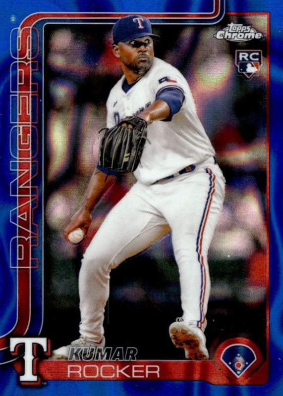 2025 Topps Chrome Kumar Rocker Blue Lava RC 090/150 Rangers #73