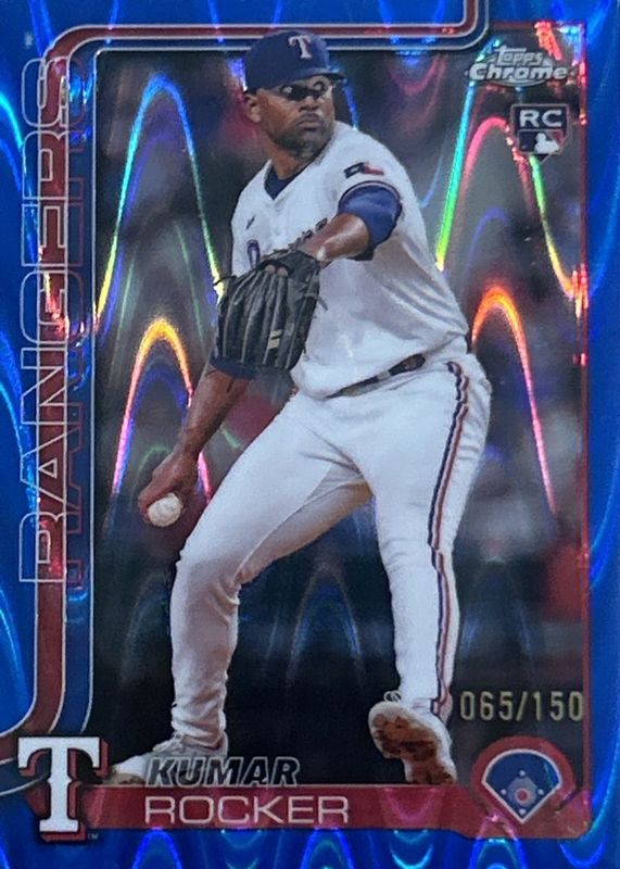2025 Topps Chrome Kumar Rocker RC /150 Blue RayWave Refractor #73 Rangers Rookie