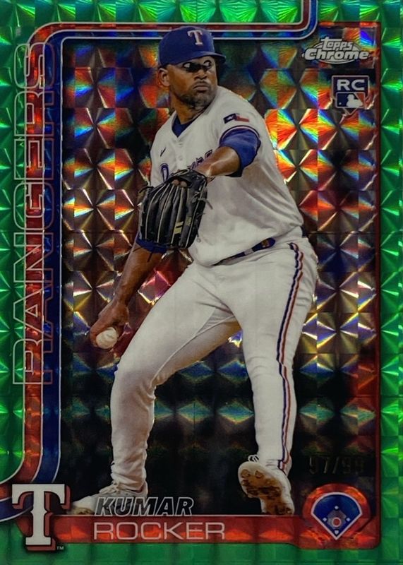 Kumar Rocker 2025 Topps Chrome #73 Green Geometric Refractor /99 Rookie RAW Price Guide