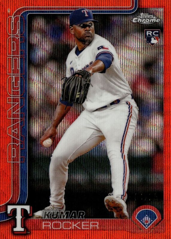 The Kumar Rocker 2025 Topps Chrome #73 Orange Wave Refractor /25 Rookie card in Raw condition has not changed in price in the last 30 days and was last sold for $16.50 .