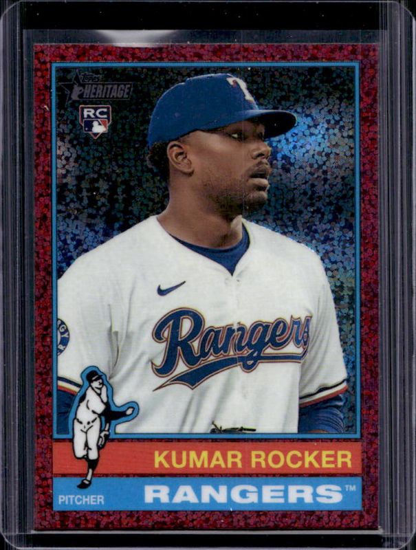 2025 Topps Heritage Kumar Rocker Chrome Burgundy Sparkle RC #179 – Rangers
