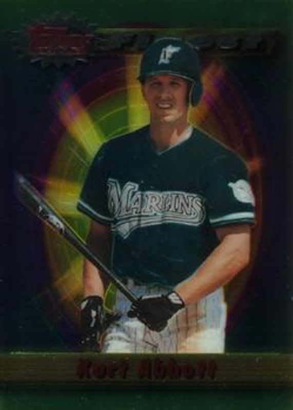 The Kurt Abbott 1994 Topps Finest #431 Base Rookie card is 1 of 2 Kurt Abbott's card variations in the 1994 Topps Finest set being tracked by Sports Card Investor, including Refractor.