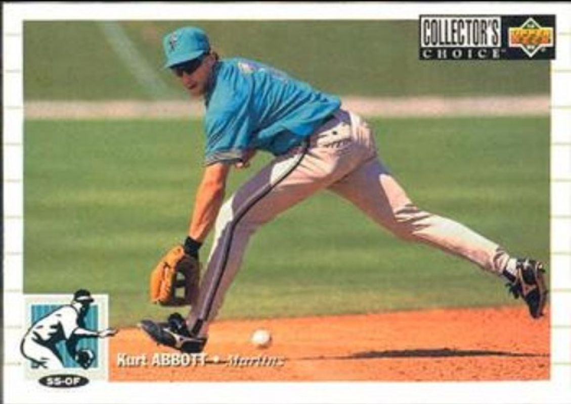 The Kurt Abbott 1994 Upper Deck Collector's Choice #389 Base Rookie card is 1 of 6 Kurt Abbott's card variations in the 1994 Upper Deck Collector's Choice set being tracked by Sports Card Investor, including #31 Base, #31 Gold Signatures, #389 Gold Signatures, #31 Silver Signatures, and #389 Silver Signatures.