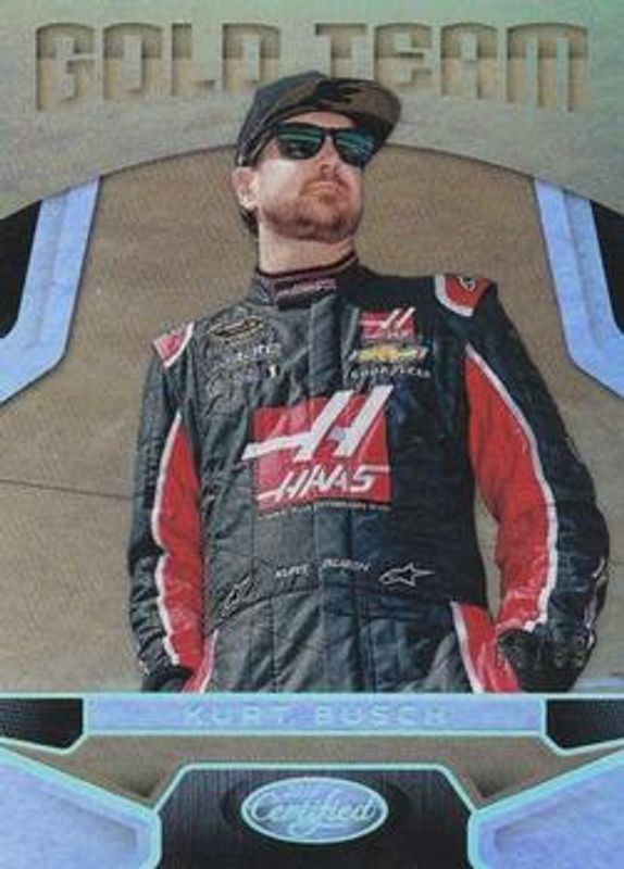 The Kurt Busch 2016 Certified NASCAR #GT12 Gold Team - Mirror Silver /99 card is 1 of 45 Kurt Busch's card variations in the 2016 Certified NASCAR set being tracked by Sports Card Investor, including Base /99, Mirror Red /25, Mirror Blue /20, Mirror Gold /15, and Mirror Orange /15.