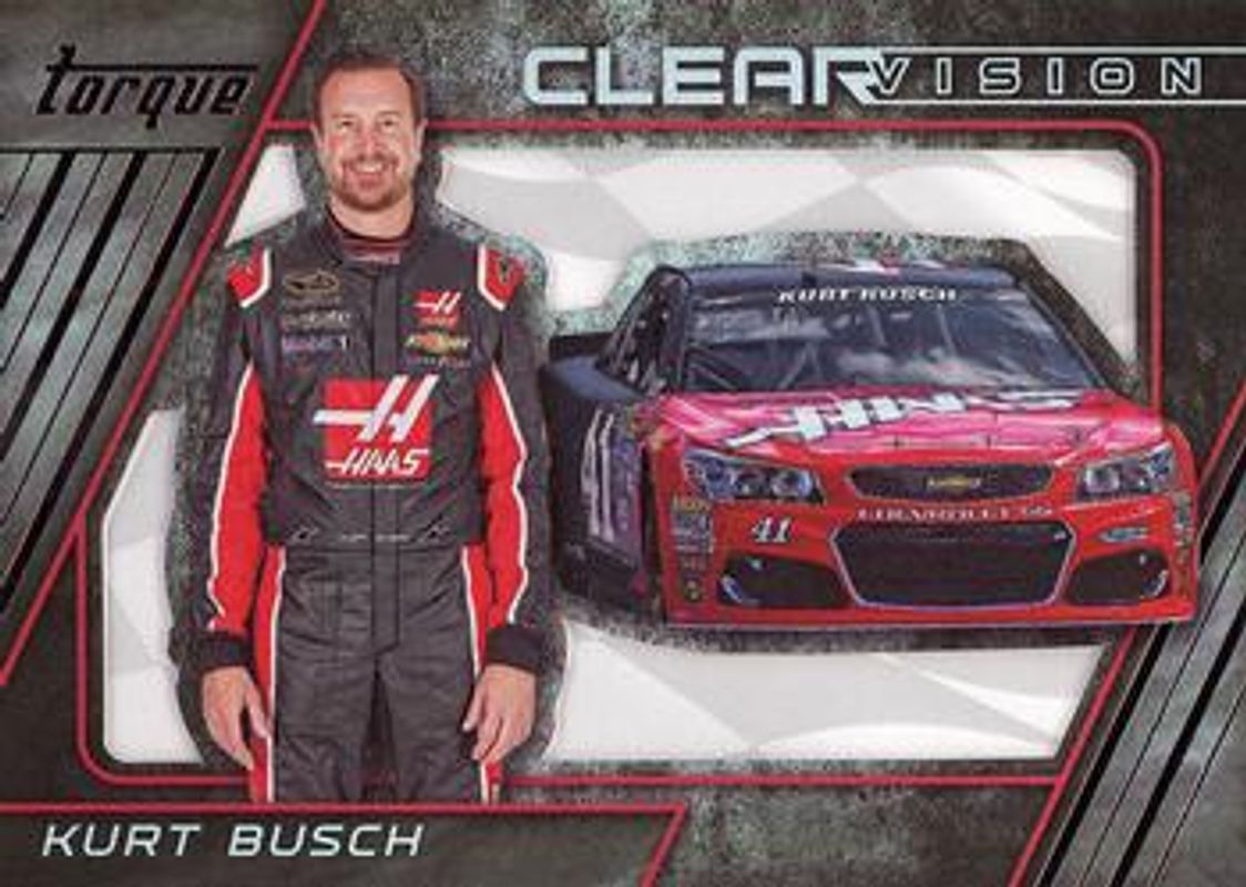 The Kurt Busch 2016 Torque NASCAR #9 Clear Vision card is 1 of 92 Kurt Busch's card variations in the 2016 Torque NASCAR set being tracked by Sports Card Investor, including #85 Base, #9 Base, #85 Gold, #9 Gold, and #9 Blue /125.