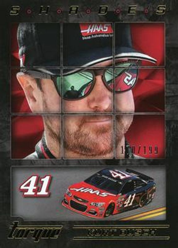 The Kurt Busch 2016 Torque NASCAR #S13 Shades Gold /199 card is 1 of 92 Kurt Busch's card variations in the 2016 Torque NASCAR set being tracked by Sports Card Investor, including #85 Base, #9 Base, #85 Gold, #9 Gold, and #9 Blue /125.