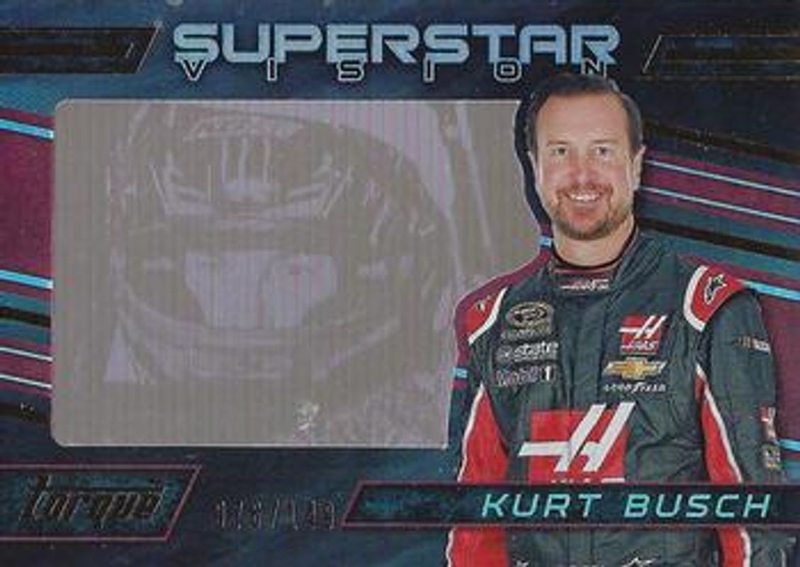 The Kurt Busch 2016 Torque NASCAR #SV19 Superstar Vision Gold /149 card is 1 of 92 Kurt Busch's card variations in the 2016 Torque NASCAR set being tracked by Sports Card Investor, including #85 Base, #9 Base, #85 Gold, #9 Gold, and #9 Blue /125.