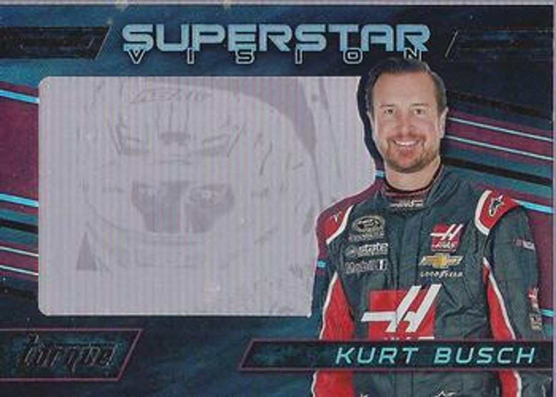 The Kurt Busch 2016 Torque NASCAR #SV19 Superstar Vision card is 1 of 92 Kurt Busch's card variations in the 2016 Torque NASCAR set being tracked by Sports Card Investor, including #85 Base, #9 Base, #85 Gold, #9 Gold, and #9 Blue /125.