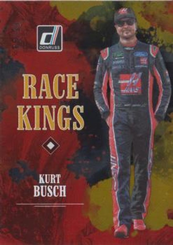 The Kurt Busch 2019 Donruss NASCAR #6 Gold Press Proof /99 card is 1 of 37 Kurt Busch's card variations in the 2019 Donruss NASCAR set being tracked by Sports Card Investor, including #6 Base, #117 Silver, #66 Silver, #66 Gold /299, and #117 Black /199.