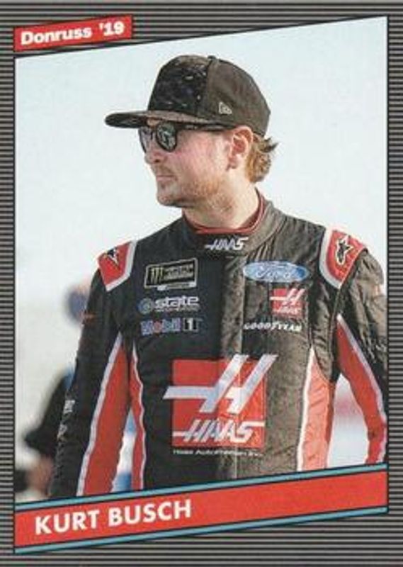 The Kurt Busch 2019 Donruss NASCAR #117 Silver card is 1 of 37 Kurt Busch's card variations in the 2019 Donruss NASCAR set being tracked by Sports Card Investor, including Base, Silver, Gold /299, Black /199, and Gold Press Proof /99.