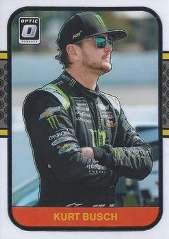 The Kurt Busch 2020 Donruss NASCAR #76 Optic card is 1 of 104 Kurt Busch's card variations in the 2020 Donruss NASCAR set being tracked by Sports Card Investor, including #112 Base, #161 Base, #189 Base, #41 Base, and #41 Carolina Blue.